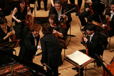 秋山先生とオーケストラに暖かく迎えて頂き、今までリサイタル等でお世話になりました同ホールの皆様のおかげで、たいへん気持ち良く楽しく演奏できました。大阪フィルとは来年3月25日(土)[ザ・シンフォニーホール]、小林 研一郎先生の指揮で、ラフマニノフの協奏曲第2番を演奏致します。