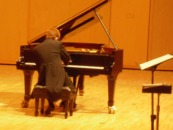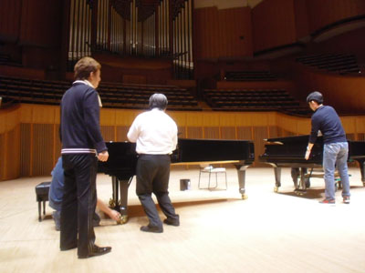 | サントリーホール直後に、もうひとつの東京公演です。 | 今日の調律は平山さん、ピアノ位置をいろいろ試してくれています。 |