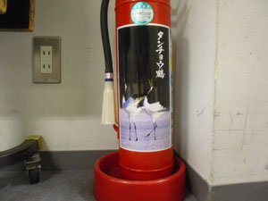 | 楽屋の消火器にタンチョウ鶴の写真が・・・ | リハーサル中にちょっと手直ししてもらっています |