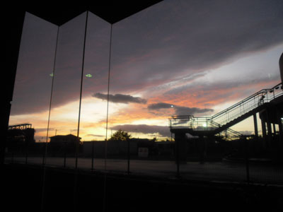 劇場ロビーから見えた夕暮れの風景 |