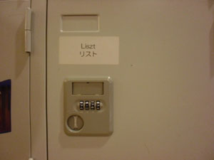 | 楽屋のロッカーひとつひとつに作曲家の名前がついています。 | 本番中のモニター映像 |