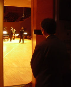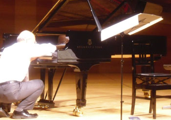 | 舞台で弾いている音を聴いて 調律の川真田さんが話しかける・・・ |