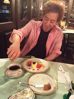 | 本番中、ピアノはかなり前に配置しました | 打ち上げはやっぱり中華、角煮まんじゅうを一口かじり「うっめー!」 |