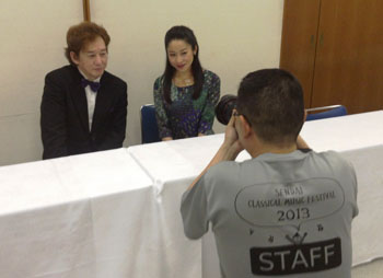 | ゲネプロ中、指揮の梅田俊昭さんとの共演は約20年ぶり | 協奏曲のステージを分け合った美人ヴァイオリニスト川久保 賜紀さんと! |