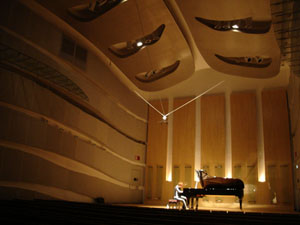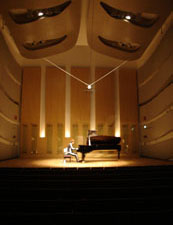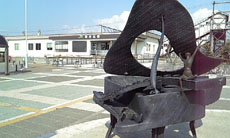 | いつもお世話になっている調律師の川岸さん | ホール前のモニュメント |