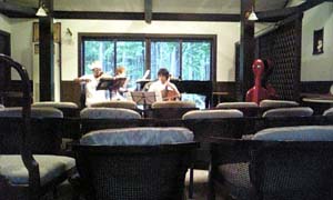 ホテルの浅川さんのご厚意で、3泊4日、しかも朝から晩まで豪華なフルコースのお食事付きの合宿をさせていただきました。 最終日には、無理矢理お願いして、宿泊しているお客さんとホテルの常連さんにお声がけしていただき、明日から始まるツアーを前にプレコンサートを開いていただきました。 本当に4日間ありがとうございました!! |