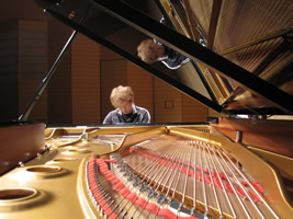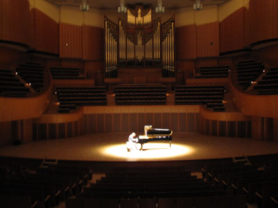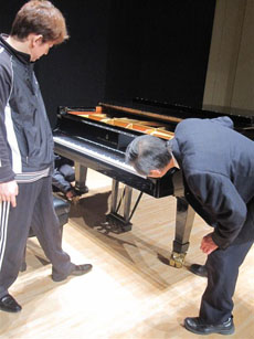 | ピアノ位置に悩む | 栗田君が弾くのあやしいスケルツォ第2番で音響を確認 | リハーサル終了直前、怪しいピアノ弾きから大胆なピアノポジションを提案される |