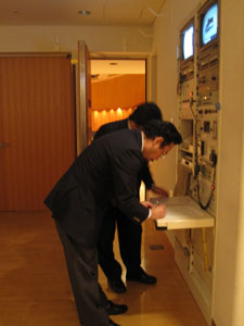 | 到着後、すぐにマイクチェック | 美しいホール |