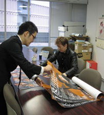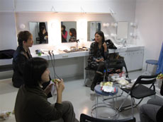 | まずはヘア&メイク | 代役栗田君で打ち合わせ中 | |