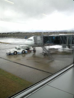 | 今日も雨。 離陸までに2時間近く遅れる・・・。 |