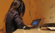 | 珍しく働いている栗田君から殺気を感じる | 今日も椅子に悩む | 珍しく、真上からのモニター |