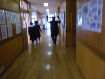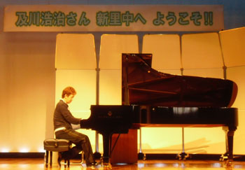 | これがそのピアノ、無事で良かったね。 | 「さあ本番!」生徒会の女の子の先導で会場へ。 |