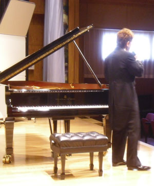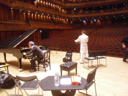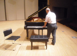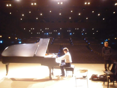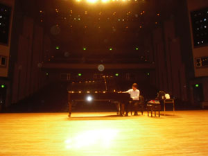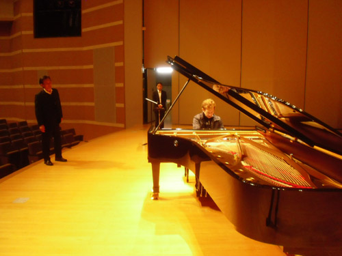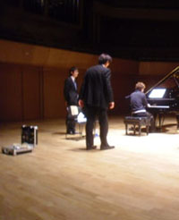 | 今日の調律は平山さん | ベストなピアノ位置を探しながらのリハーサル |