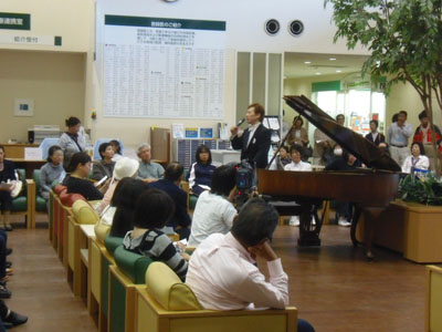 ![]() 5年前に海沿いから今の場所に移転、津波被害を免れました。 この地区の医療の中心での演奏会でした。 |