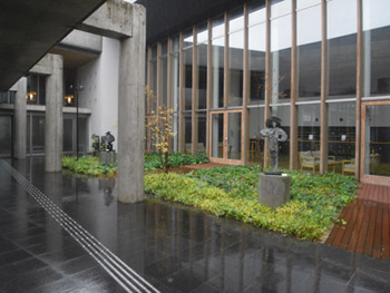 | あいにくの雨、でもこの中庭がしっとりとキレイですね | |