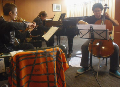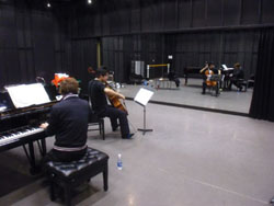 | まずはリハーサル、ピアノは1950年代の小型スタインウェイ | |