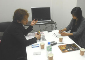 | 次は場所を移動して、「月刊ピアノ」のインタビュー 例によって熱く語っています! |