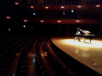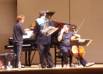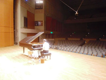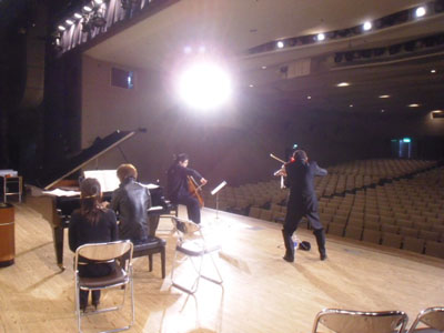| 翌日早朝から調律の平田さん、毎年ありがとうございます | 本番前のリハーサル、正面からベートーヴェンの胸像が見守ってくれています! |