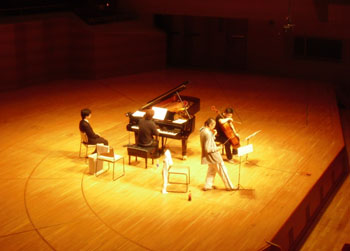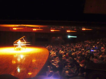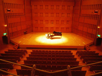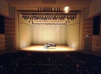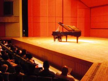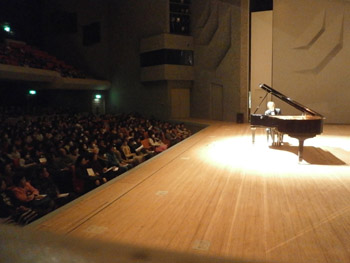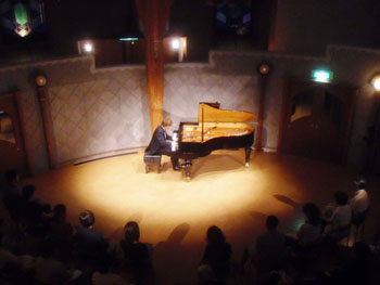 | 約300席の円形ホール、ピアノはなんとベーゼンドルファーのインペリアルでした! | 譜めくりをして頂いた猿谷さんは、及川浩治・石田泰尚の大学の後輩であることが判明 |