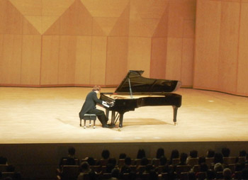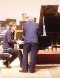 | 本番、弾き終わると同時に「BRAVO!」と止まらない拍手、マエストロに強引にピアノに座らされて予定外のアンコールまで! | |