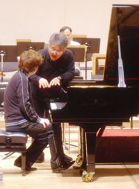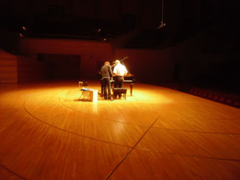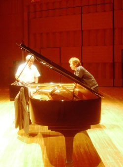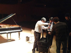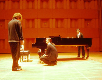 | 舞台で弾いている音を聴いて 調律の川真田さんが話しかける・・・ |