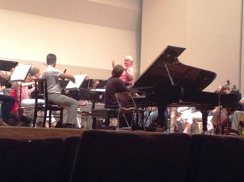 | ゲネプロ中、指揮の梅田俊昭さんとの共演は約20年ぶり | 協奏曲のステージを分け合った美人ヴァイオリニスト川久保 賜紀さんと! |