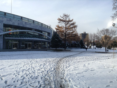 | 11月なのに早くもうっすらと雪化粧の中島公園とKitara | ピアノ椅子の修理中、川岸さん2週続けてありがとうございます |