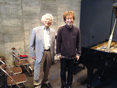 | リハーサルのあと、たまたま静岡にいらしていた舘野泉さんが! 舘野さんも青嶋さんご夫妻とは長くて深いご関係なのです |
