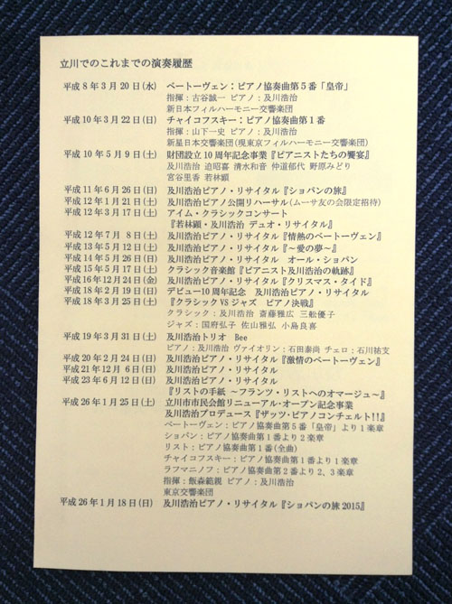 ザ・シンフォニーホールの次に登場回数が多いのは、たぶん立川でしょう。