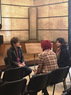 | リハーサルの合間に、12月のリサイタルでお世話になる 東北放送さんと歓談。 親しい方の顔を見て、緊張感も和らぎます。 |